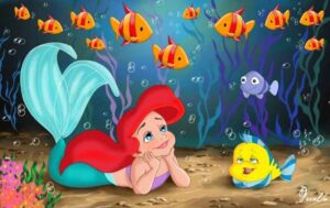 پری های دریایی در کارتونهای کودکانه به صورت کوچولو و بچگانه نمایش داده میشود. پری دریایی کوچولو (The Little Mermaid) بسیار مهربان و زیبا هستند. فیلم سازان این موجوادت کارتونی را با نماد مهربانی و دوستی به بچهها معرفی مینمایند.